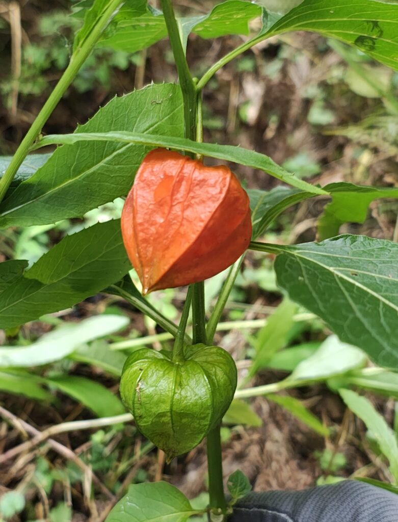 途中ホウズキやキノコに出会いました。