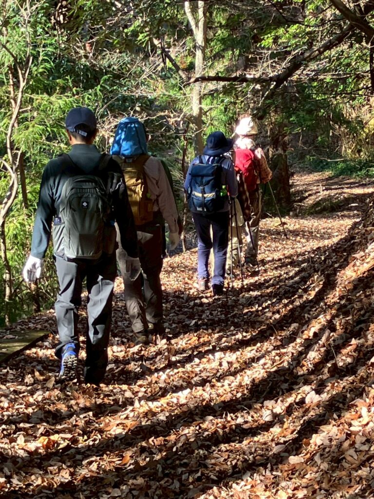 落ち葉を踏みしめて歩く比較的歩き