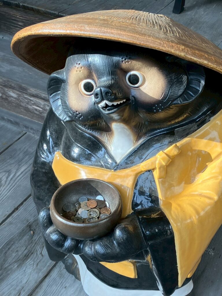 では、本堂前のタヌキ和尚に入山料