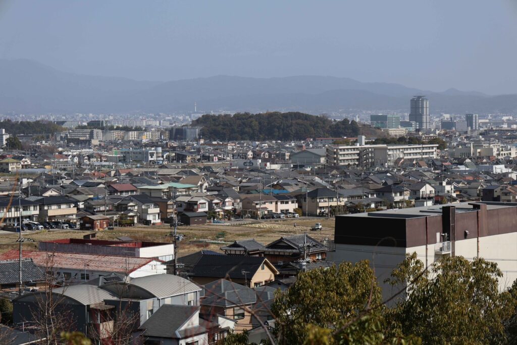 西山公園・光明寺と、竹林と新興住宅地を