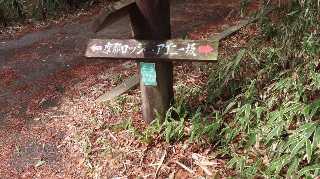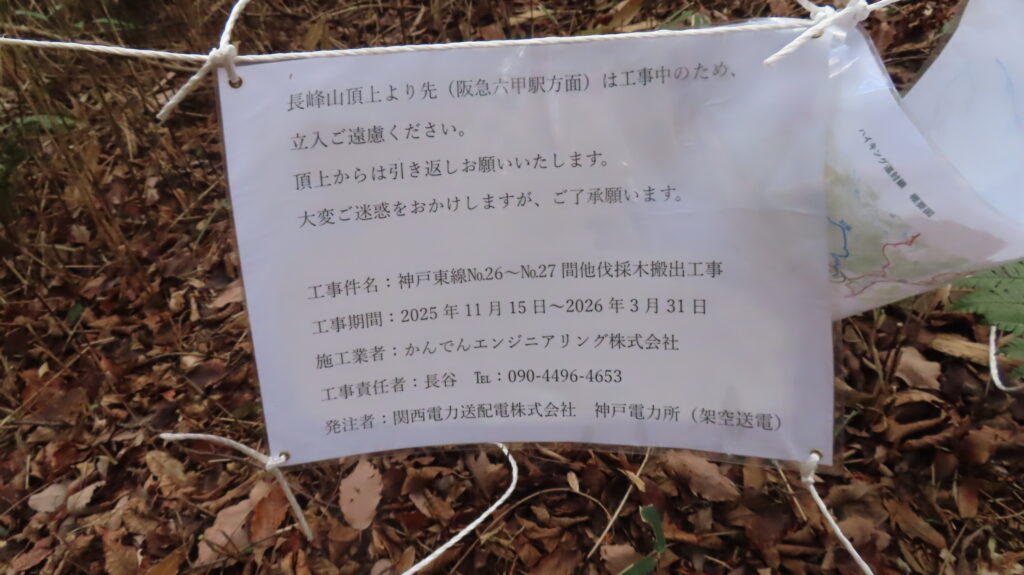 下山ルートは、直進コースが工事通行止めの